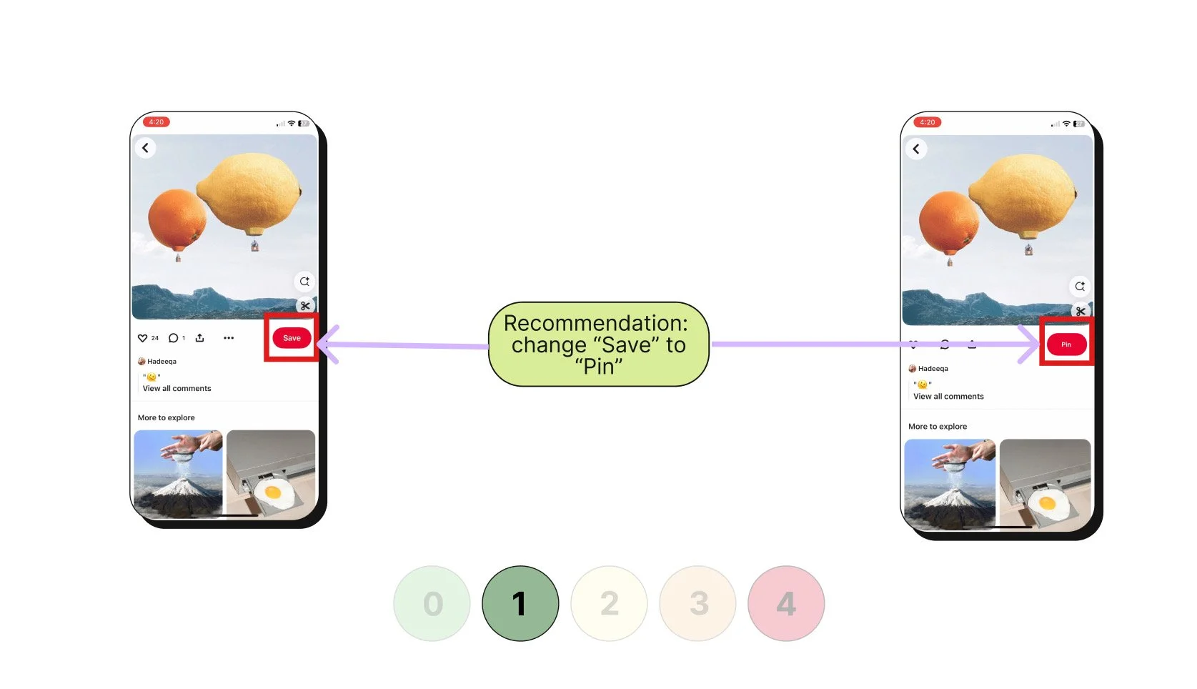 To maintain consistency and align with user expectations, I recommended standardizing the terminology across the app by using “Pin” rather than “Save.” If both terms must be used for technical or marketing reasons, clear onboarding or tooltips should explain that the two actions mean the same thing. This change strengthens brand alignment, reduces user confusion, and improves overall clarity in navigation.