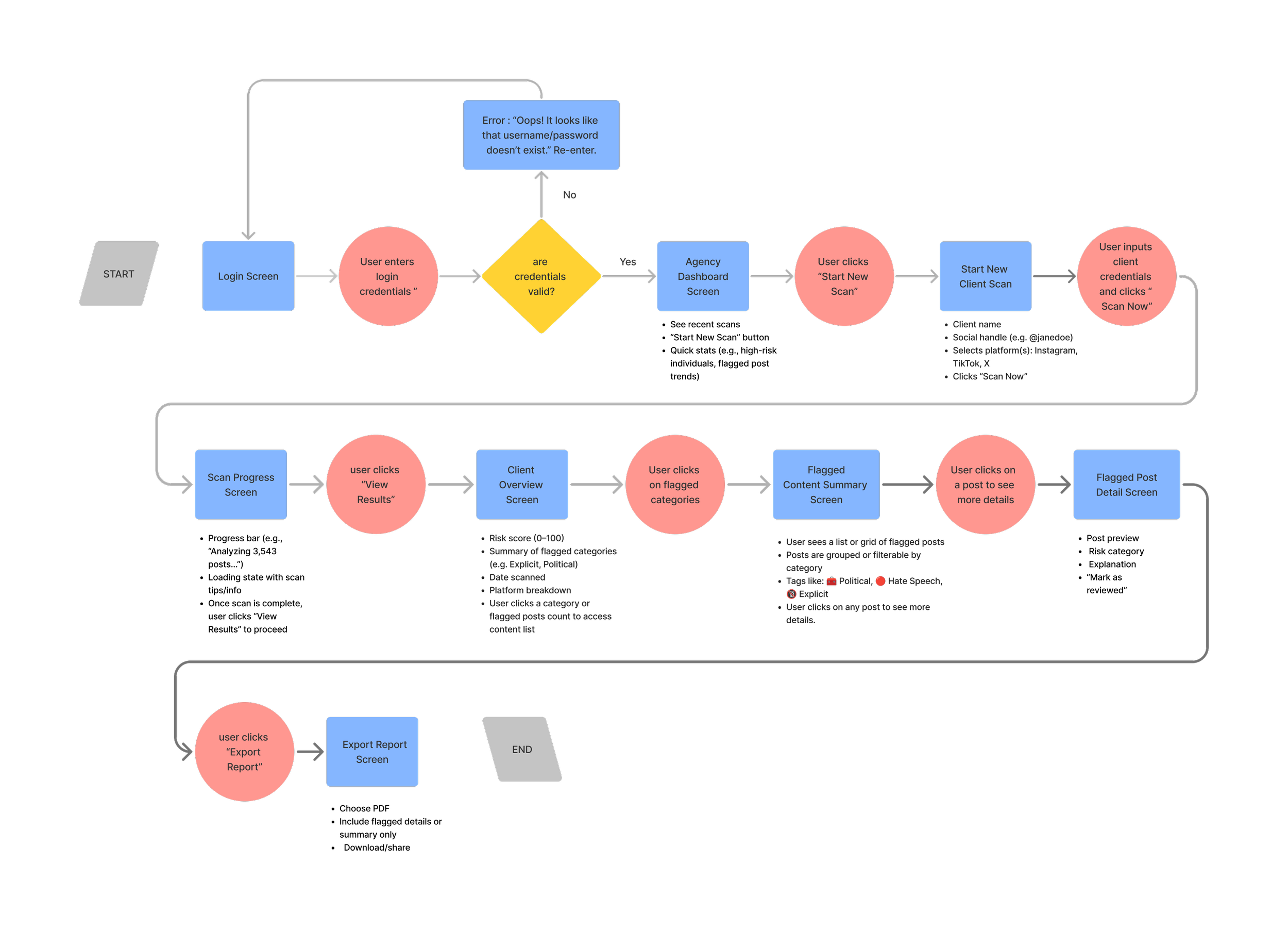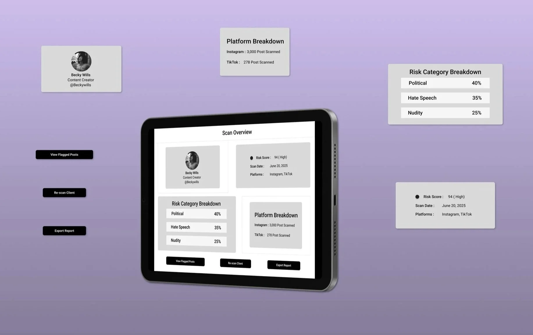 Flagged Content: Users wanted the platform name/icon displayed on each flagged item so it’s immediately clear where the content originated (e.g., Instagram, TikTok, X).